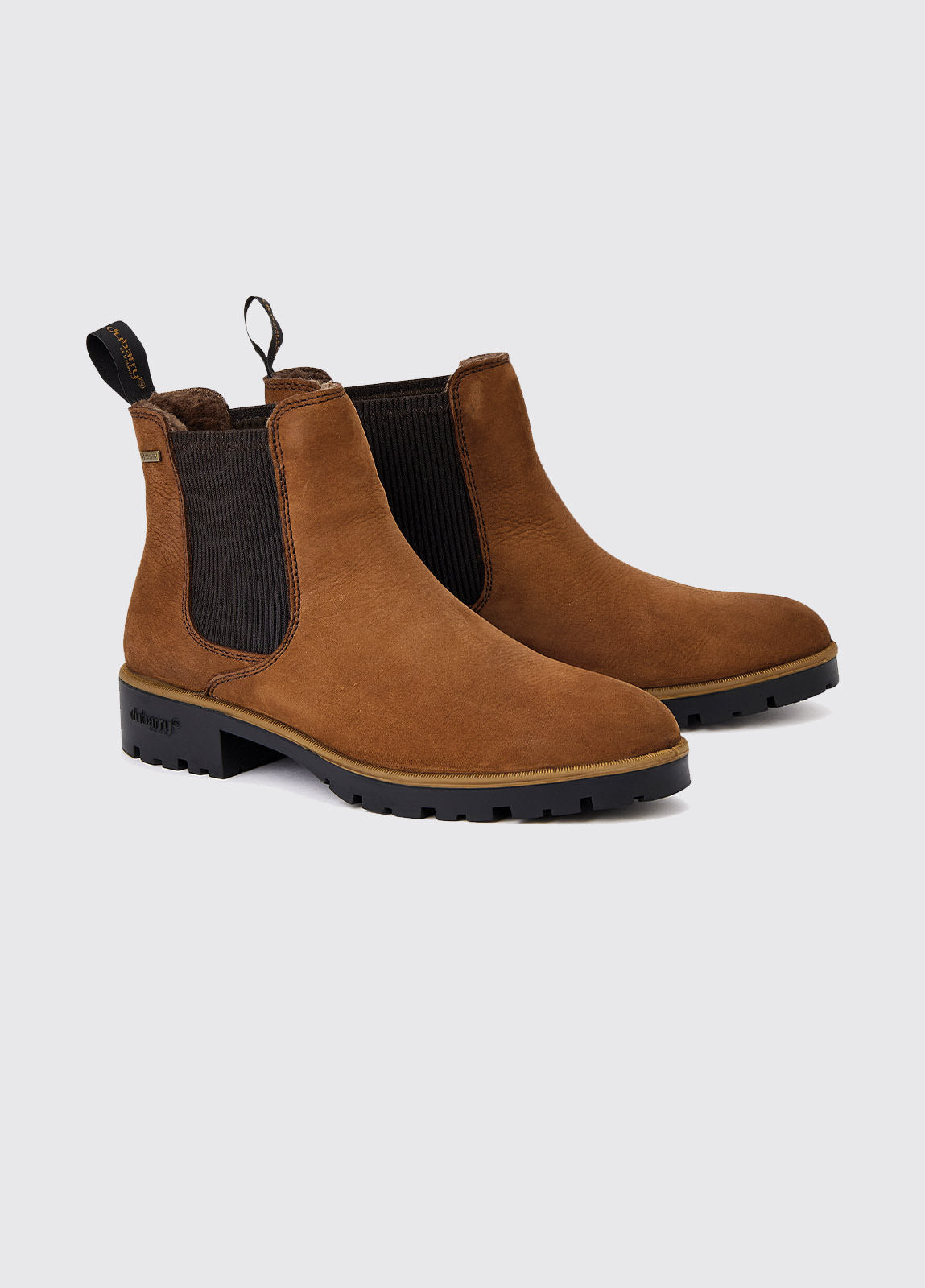 A winter secret weapon, our Kilcommon Chelsea boots have sleek, unfussy lines, ideal for a smart weekend style but are lined with faux fur for ultimate cosiness. Loaded with Dubarry technical know-how they have shock-absorbing and gripping soles, DryFast-DrySoft TM leather exteriors and a GORE-TEX membrane to combat wet weather. Slip them on easily with elastic panels and a finger pull and you'll feel like you've popped out in your slippers