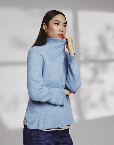 Harmony Merino Wool Blend Funnel Neck Jumper- Blue Heron