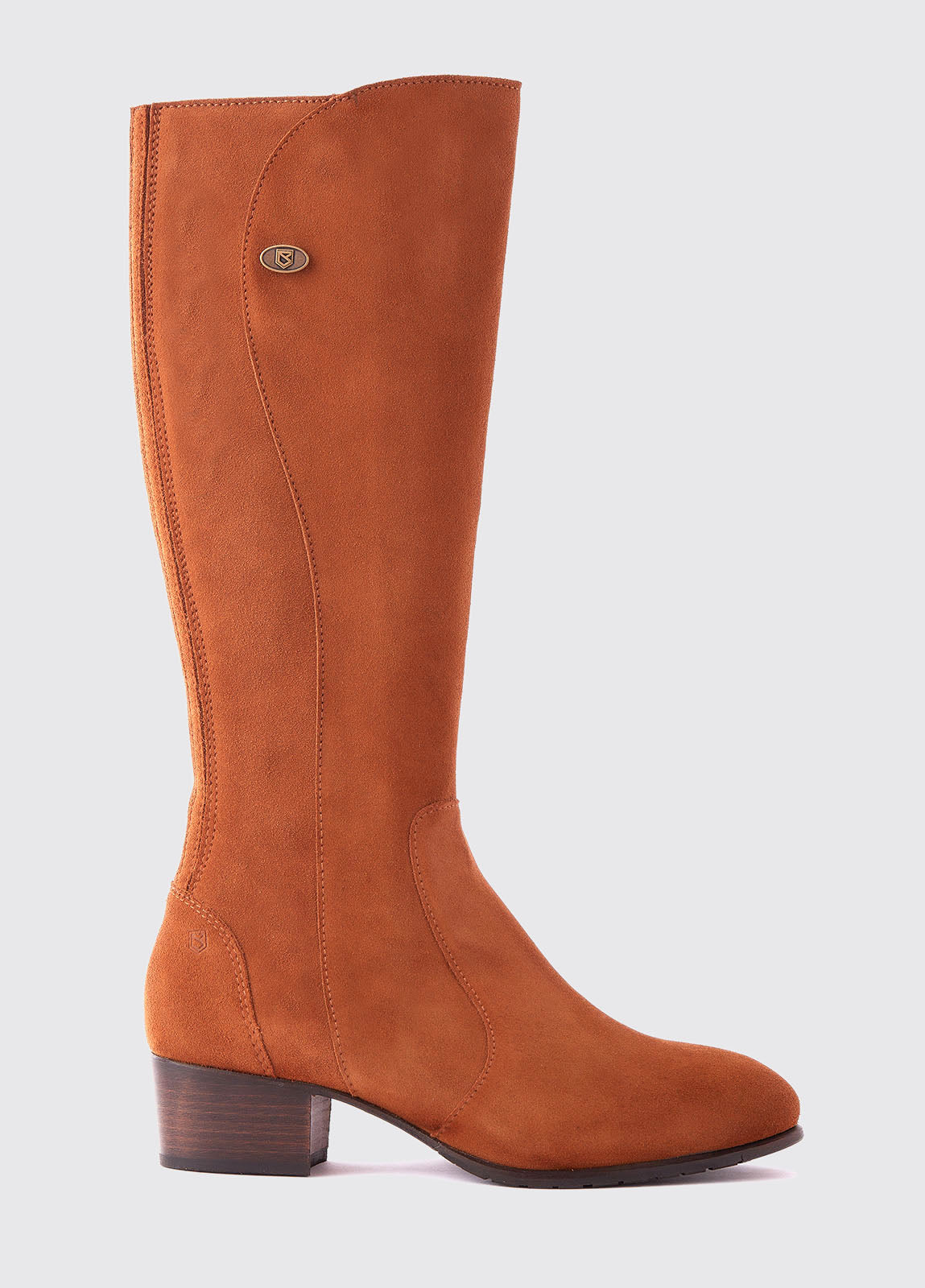 Turn heads in the beautifully crafted, knee-high Downpatrick boot. A streamlined suede and leather silhouette moulds comfortably around the leg and a small heel elongates legs offering a sophisticated companion to a variety of outfits. Team with a McDonnell knitted dress or tweed skirt for showstopping look at the races, or slip on over jeans to step out at the weekend. Water resistant DryFast-DrySoft™ finish will keep you dry and pristine wherever you head.