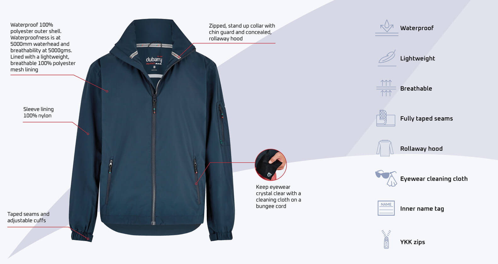 - Waterproofness is a 5000mm waterhead and breathability at 5000gms - both very good for the level of use for this style of jacket