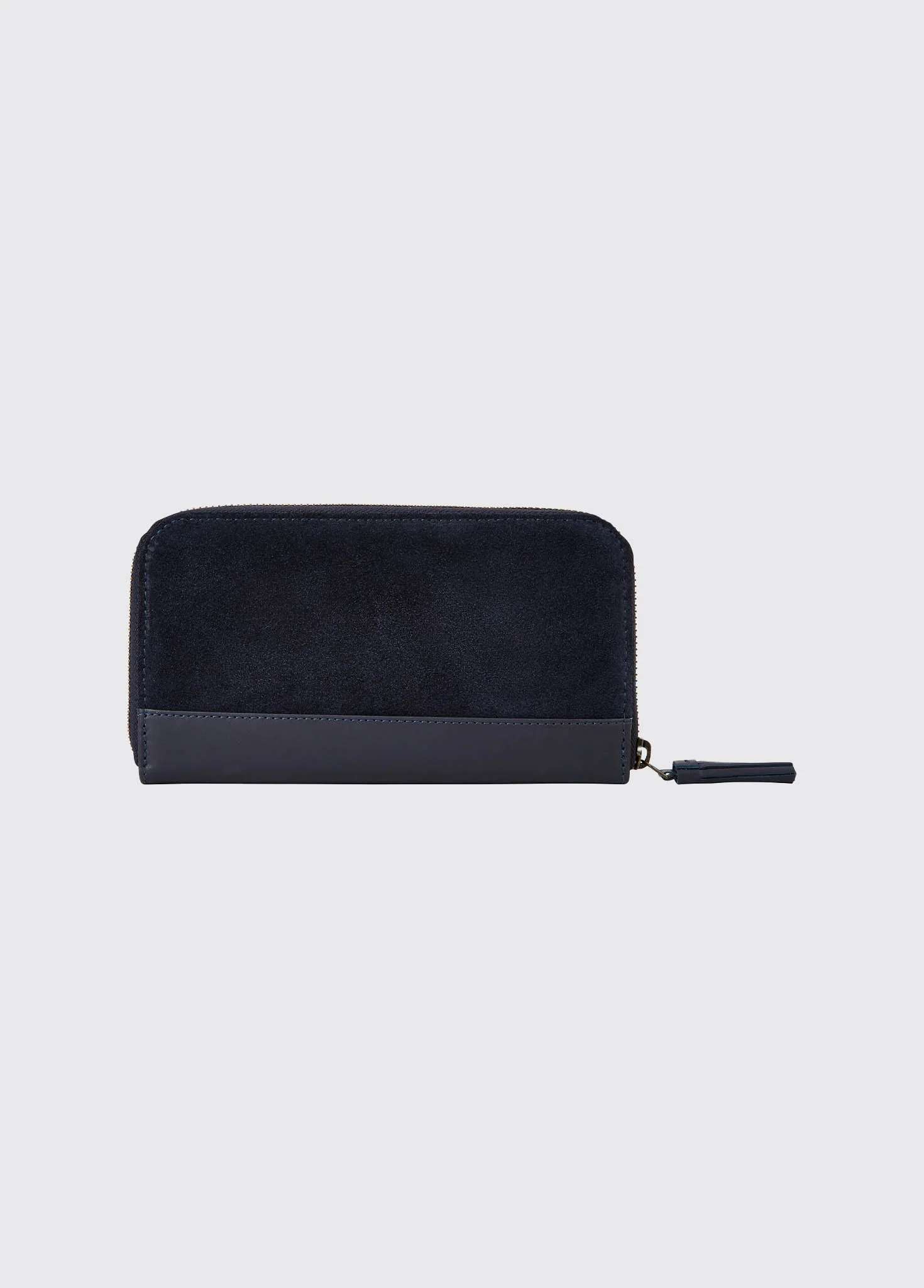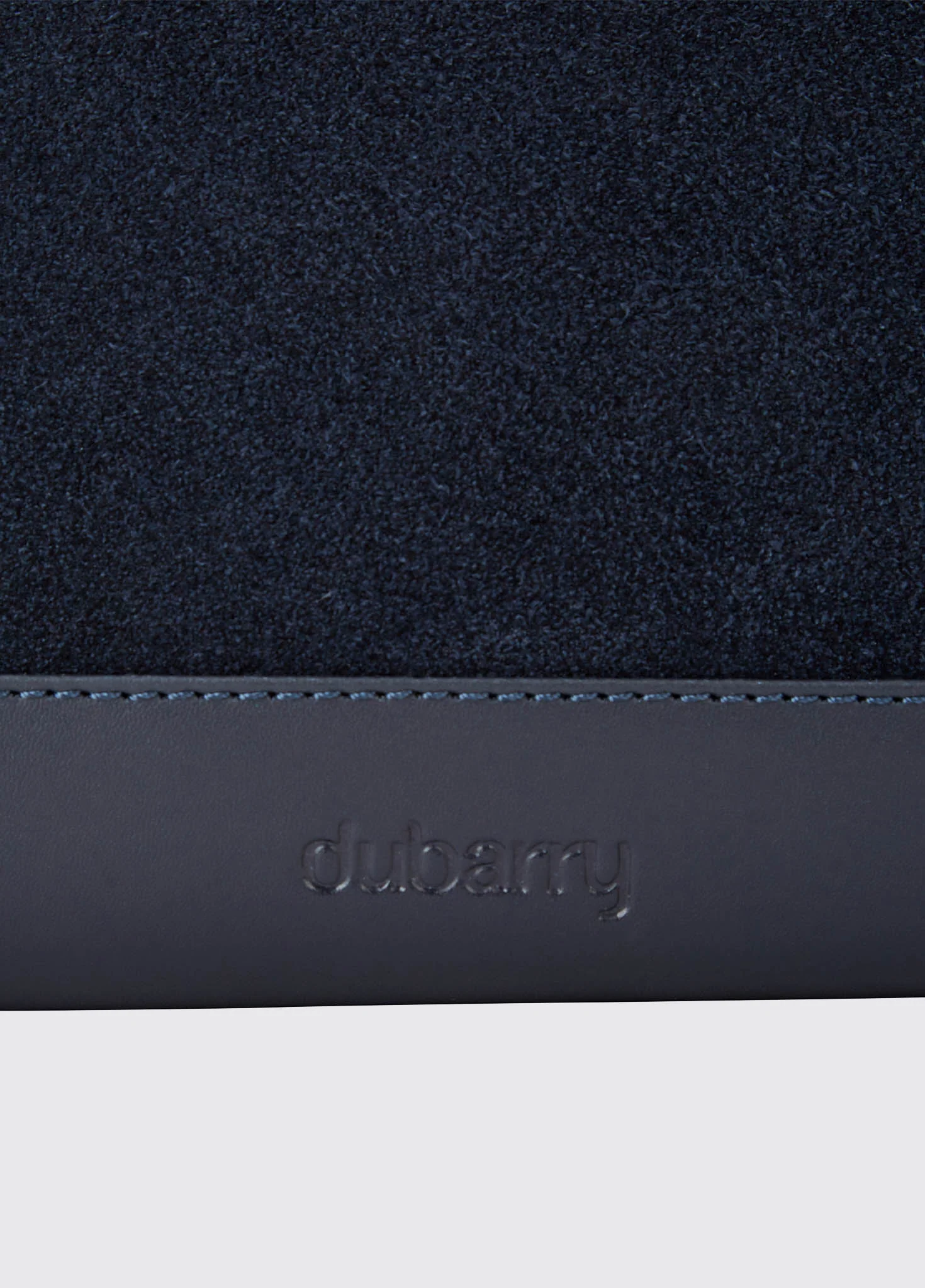 Leather trimmed suede purse with tassel detail and subtle Dubarry branding